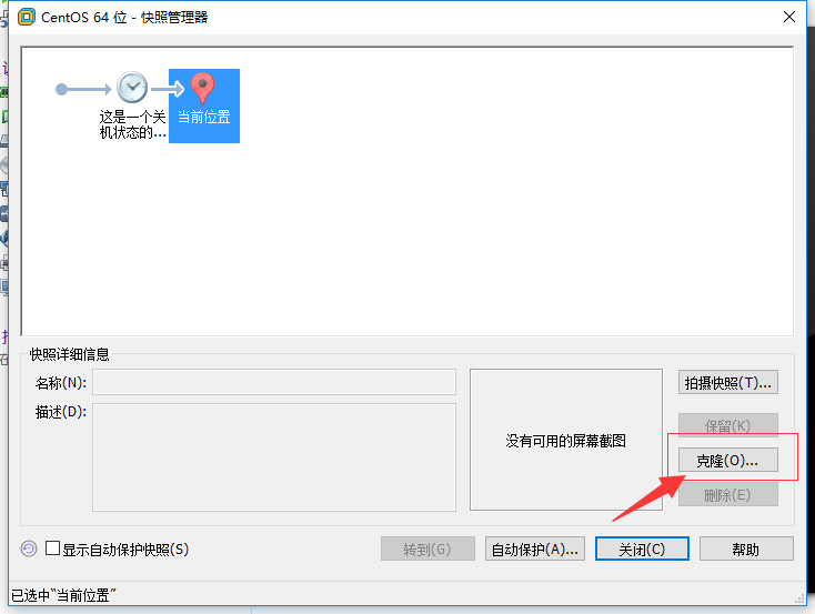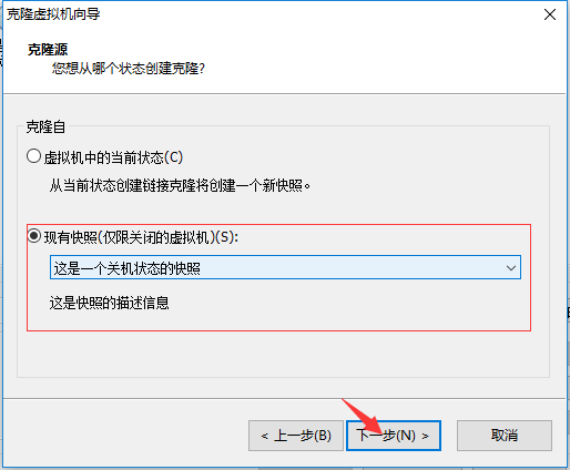 正常选择通过快照创建克隆(只能是关机状态下的克隆)