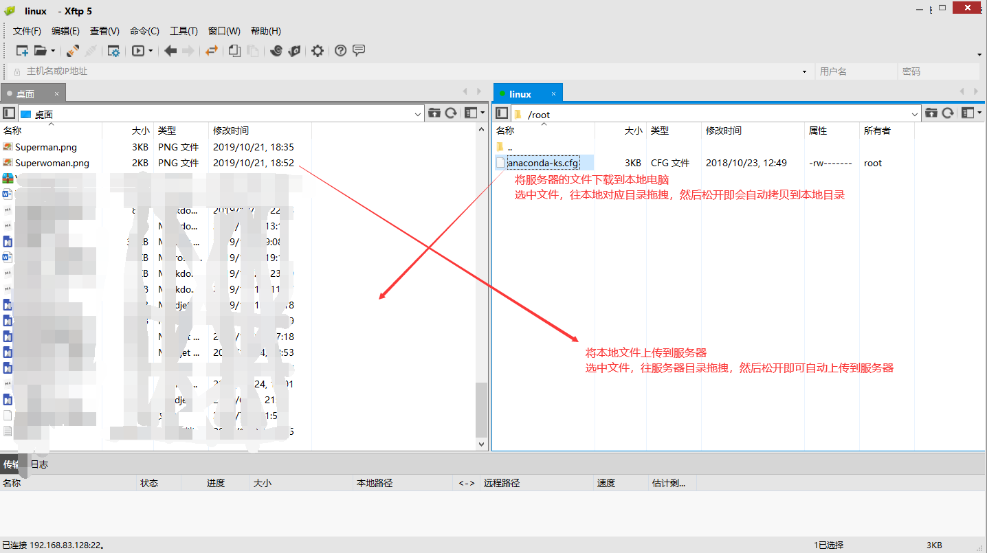 # 1.通过Xftp5连接到Linux,并传输windows下一个任意文件,到/root目录下