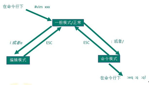 以vim打开文档,直接进入的就是一般模式,这个模式下,我们可以使用键盘上的 ↑ ↓ ← → 来移动光标,delete 删除末尾字符,等等(具体的快捷键后面会说)