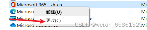 2.打开控制面板/卸载程序,找到office右击更改/联机修复