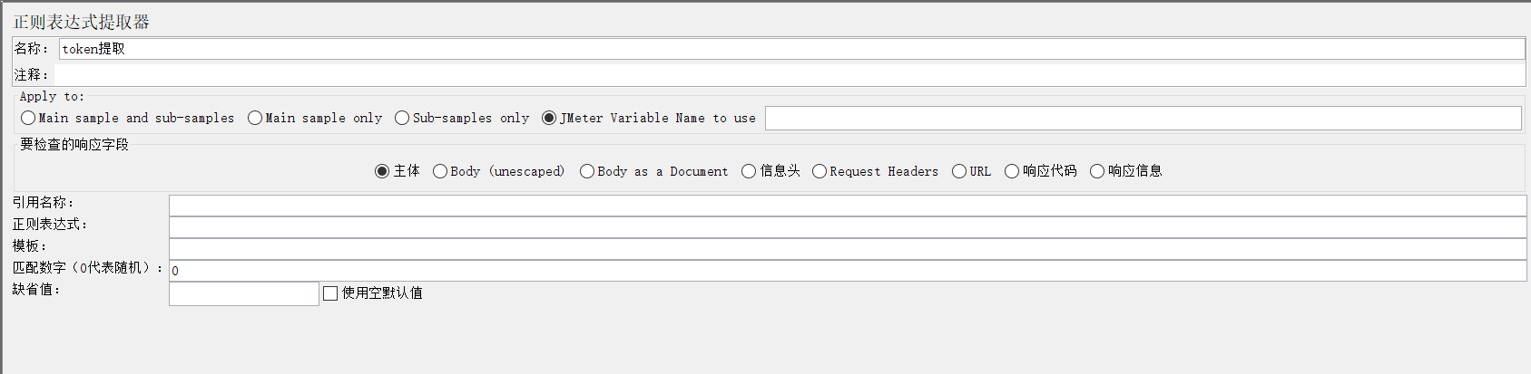 缺省值:即默认值,若正则表达式未取到值,则使用此缺省值