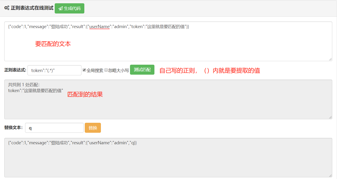模板:使用方式:$数字$;表示提取到的第几个值给引用名称使用,$1$ 表示提取到的第一个值