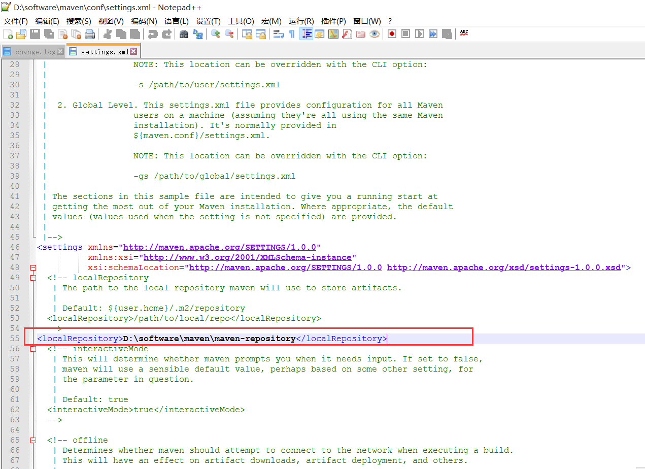 找到<loacalRepository>标签,黑色部分输入将要使用的本地仓库地址