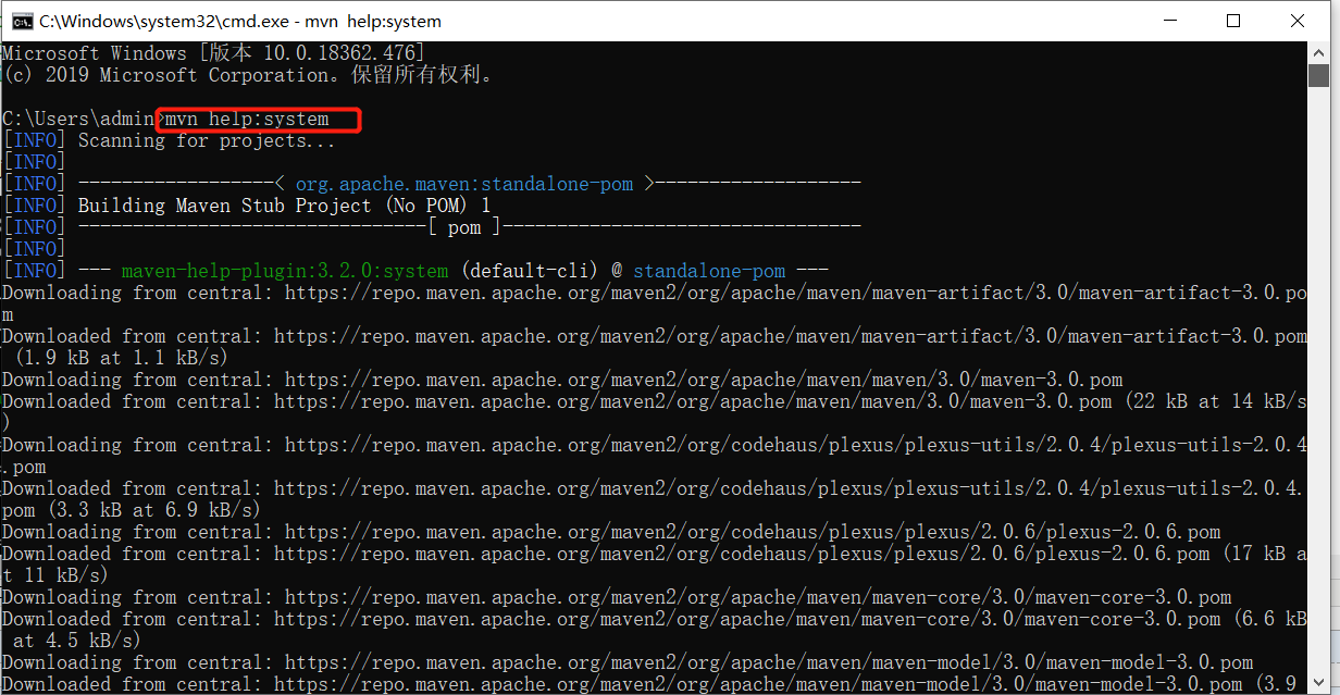 本地命令查看 打印所有java系统属性和环境变量 mvn help:system