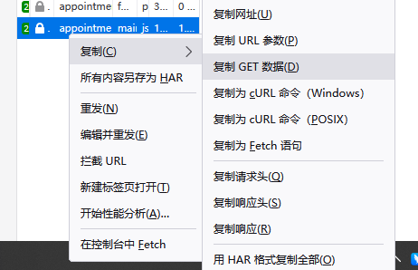1、浏览器 打开F12,选择network(或网络),右键某个接口,复制,