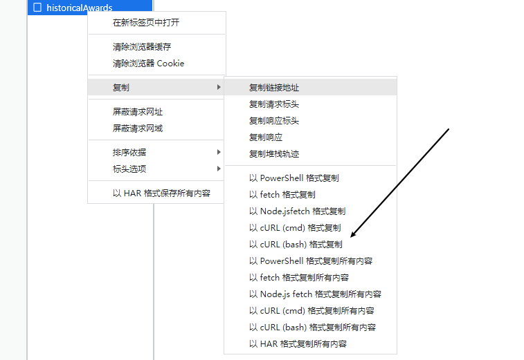 Chrome:以cURL(bash)格式复制