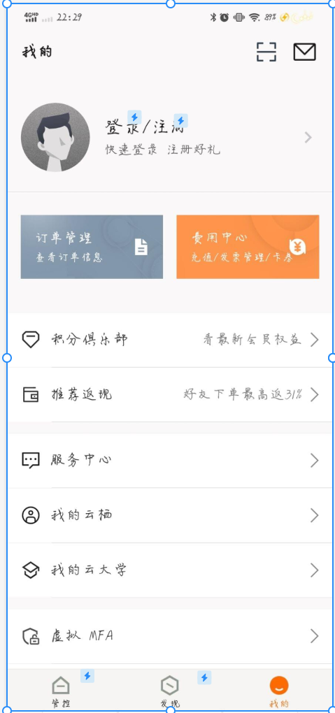 一,这次作业我所采用的是墨刀原型工具仿照阿里云APP画出基本的页面布局