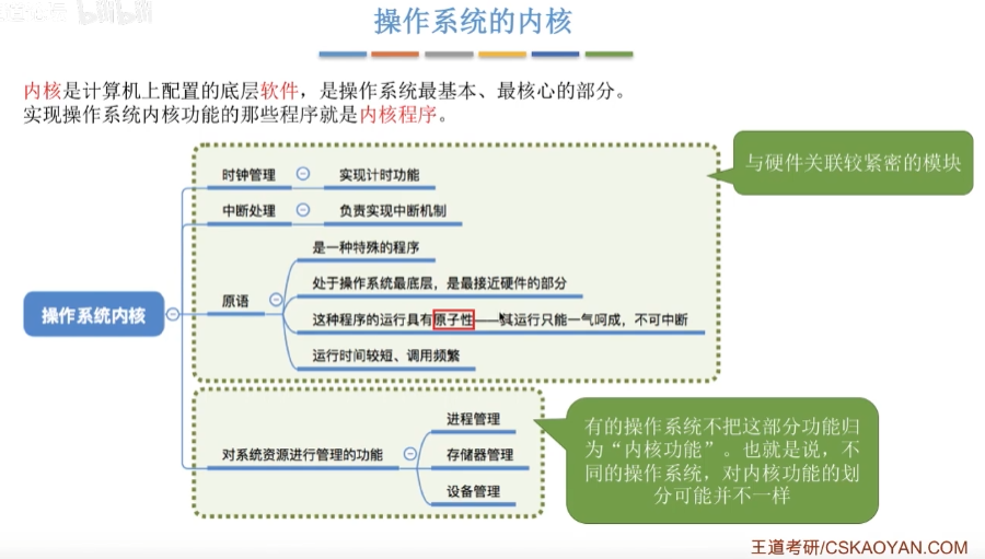 - 内核程序:操作系统的核心内容,系统资源的管理者,运行于核心态