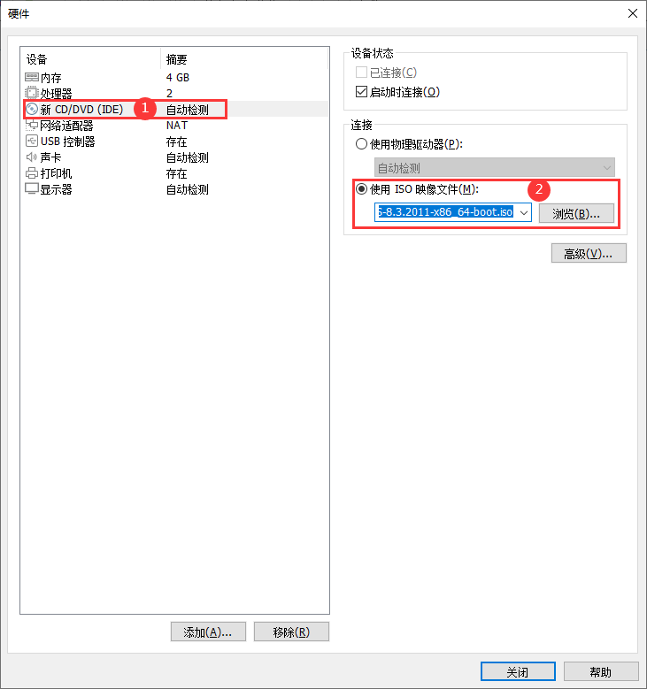 16 选择安装ISO文件CentOS-8.3.2011-x86_64-boot.iso