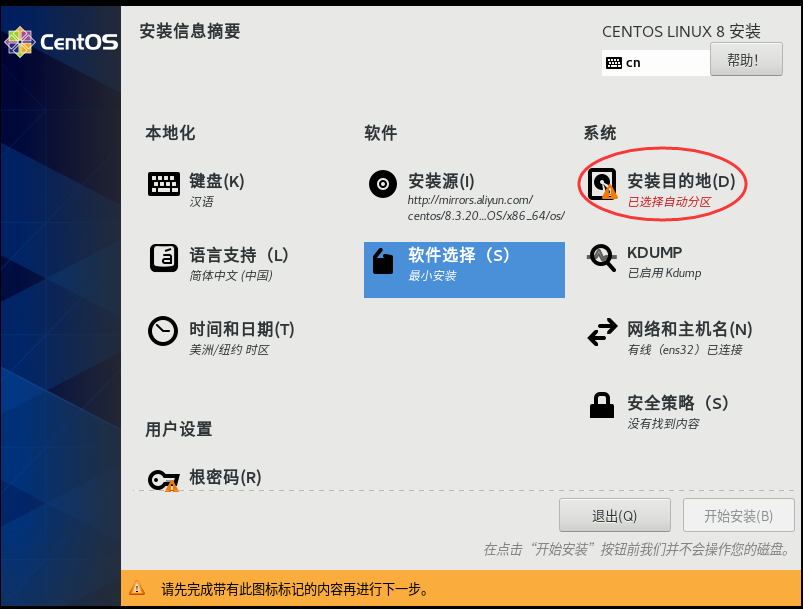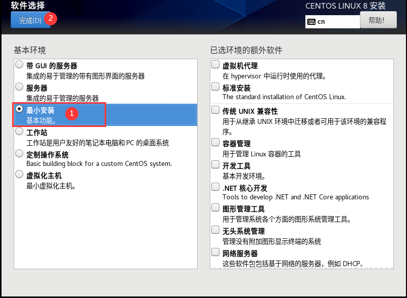 注:CentOS8不再提供minimal版,只有网络版和完整版。这里采用网络boot版,在安装过程中需要配置网络。