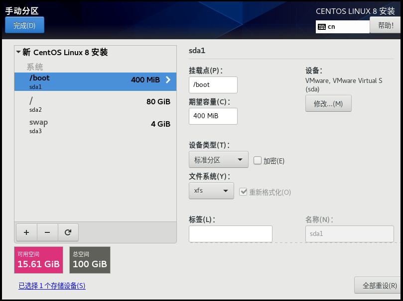 手动分区完成