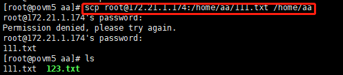 将本服务器上的文件复制到远程服务器: scp /home/aa/333.txt root@172.21.1.174:/home/aa/