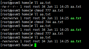 上述示例还可以使用数字表示:chmod 764 aaa.txt
