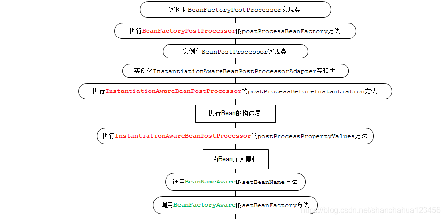 红色的容器级生命周期接口的Bean会在其他Bean实例化之前实例化。因为他们的功能是监控整个容器的Bean。