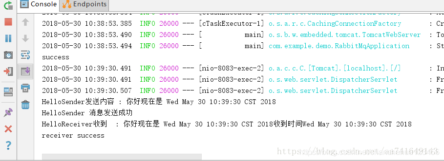 System.out.println("HelloReceiver收到 : " + msg +"收到时间"+new Date());