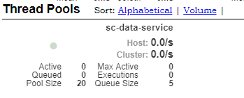 当前启动两个微服务,都有@FeignClient(name = "sc-data-service"),设置每个线程池默认大小是10,在dashboard只显示一个sc-data-service,但是Pool Size为两个总和。经测试实际使用中也是各用各的互不干扰。Pool Size初始为0,会随着使用增长,但是不会超过服务设置的max值总和。