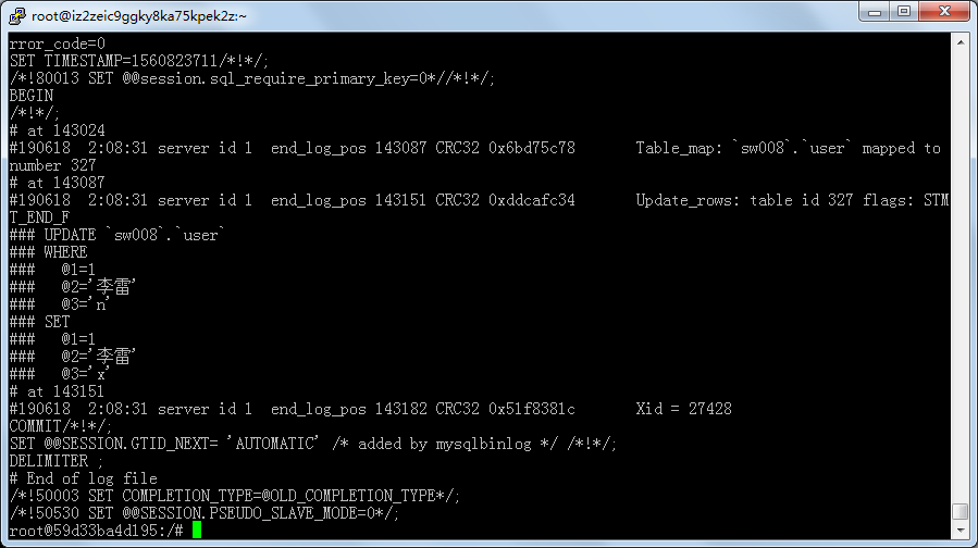 若打印的SQL语句为乱码,则需要base64解析 --base64-output=decode-rows