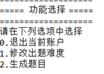 构造函数:包括设计主菜单函数,登陆函数,功能选择函数,难度选择函数,题目生产函数等