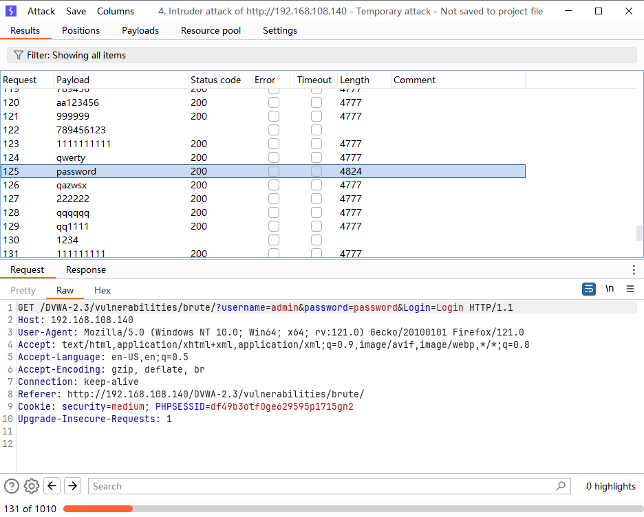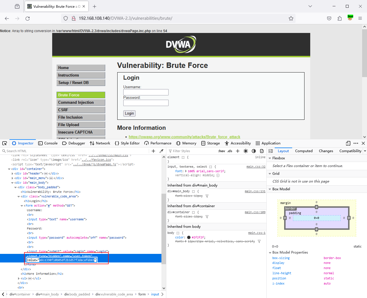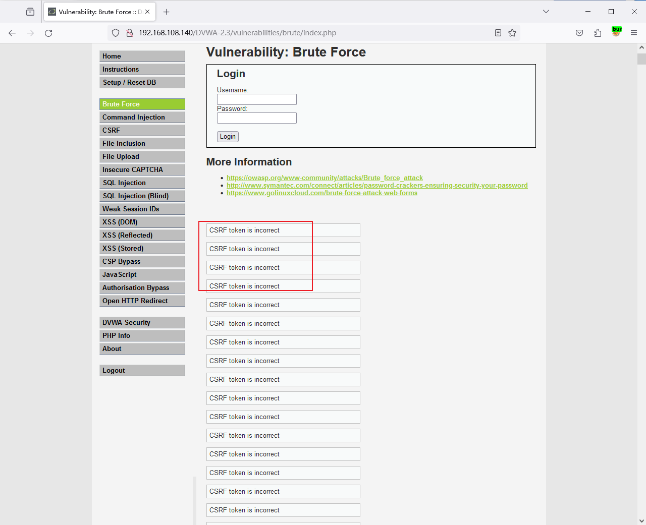 暴力破解时,出现 CSRF token is incorrect。token每次都在变。所以需要再多添加一个爆破参数,user_token。