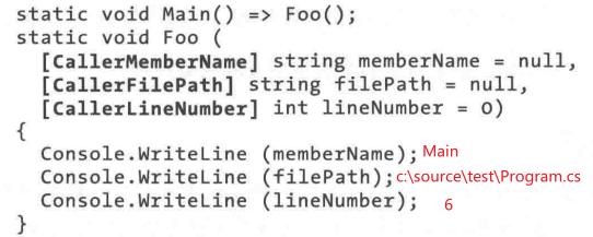 在可选参数上添加三种调用者信息中的一种,它们可以让编译器从调用者源代码获取参数的默认值。