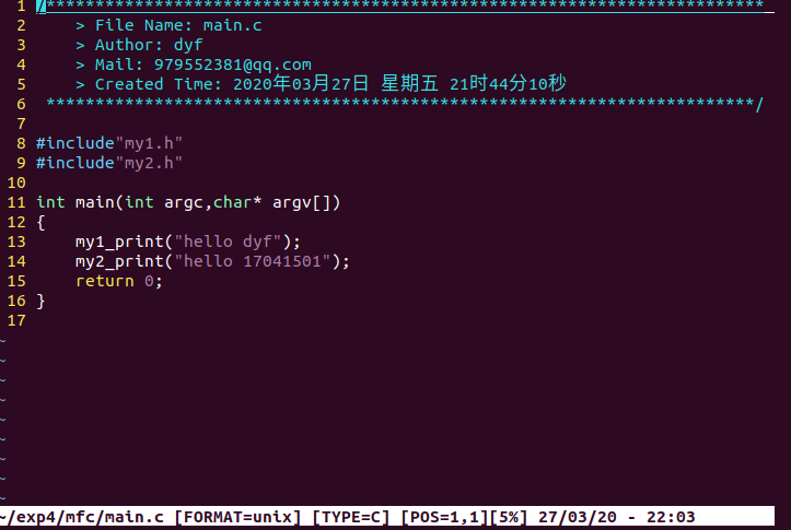在exp4文件夹下面再建一个文件夹mfc(multi-files compile)