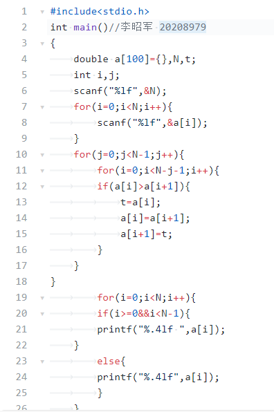 上次PTA排序代码(运用冒泡法)