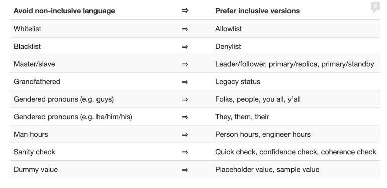 随着全球反对种族歧视运动的影响力越来越大,世界科技巨头和著名的开源社区也在积极响应。从组件的命名上给予正面的支持。主要包括: