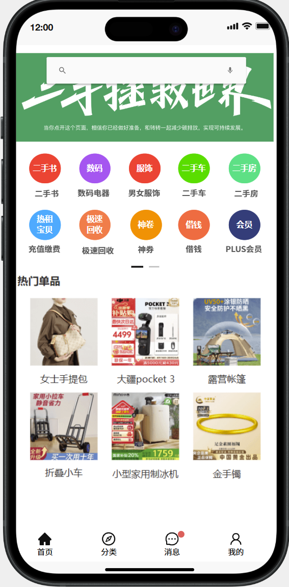 (1)易用性:整个界面设计注重操作的便捷性,如首页的搜索栏和导航栏设计在显眼位置,方便用户快速找到并使用;分类页面的清晰标识和特色图标,使用户能够快速识别和筛选商品;个人中心的功能布局合理,便于用户管理个人信息和交易记录等。通过这些设计,降低用户的操作难度,提升用户体验。