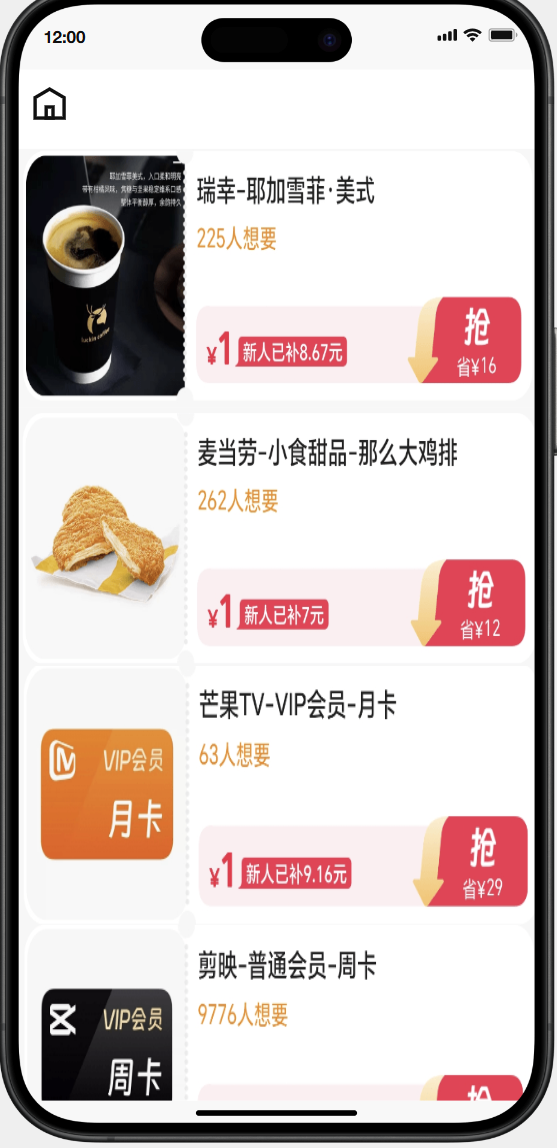 (3)功能分区明确:各个页面的功能分区明确,如首页的顶部分类导航栏和底部功能导航栏,将商品专区和功能区清晰划分;分类页面的不同商品分类板块,使用户能够按兴趣快速筛选;个人中心的各项功能模块独立展示,方便用户操作。这种明确的功能分区,使用户能够快速找到自己需要的功能,提高使用效率。
