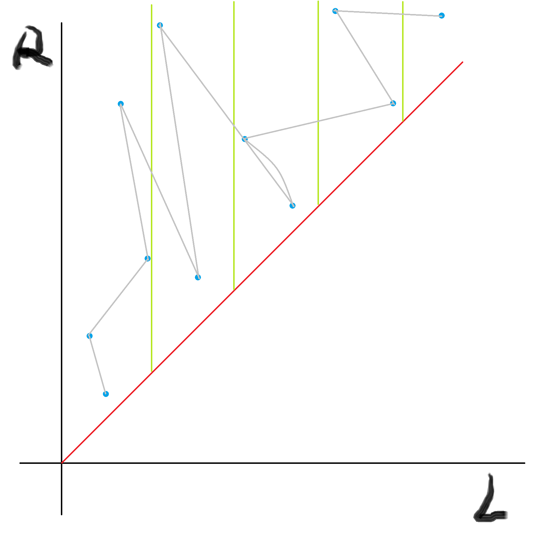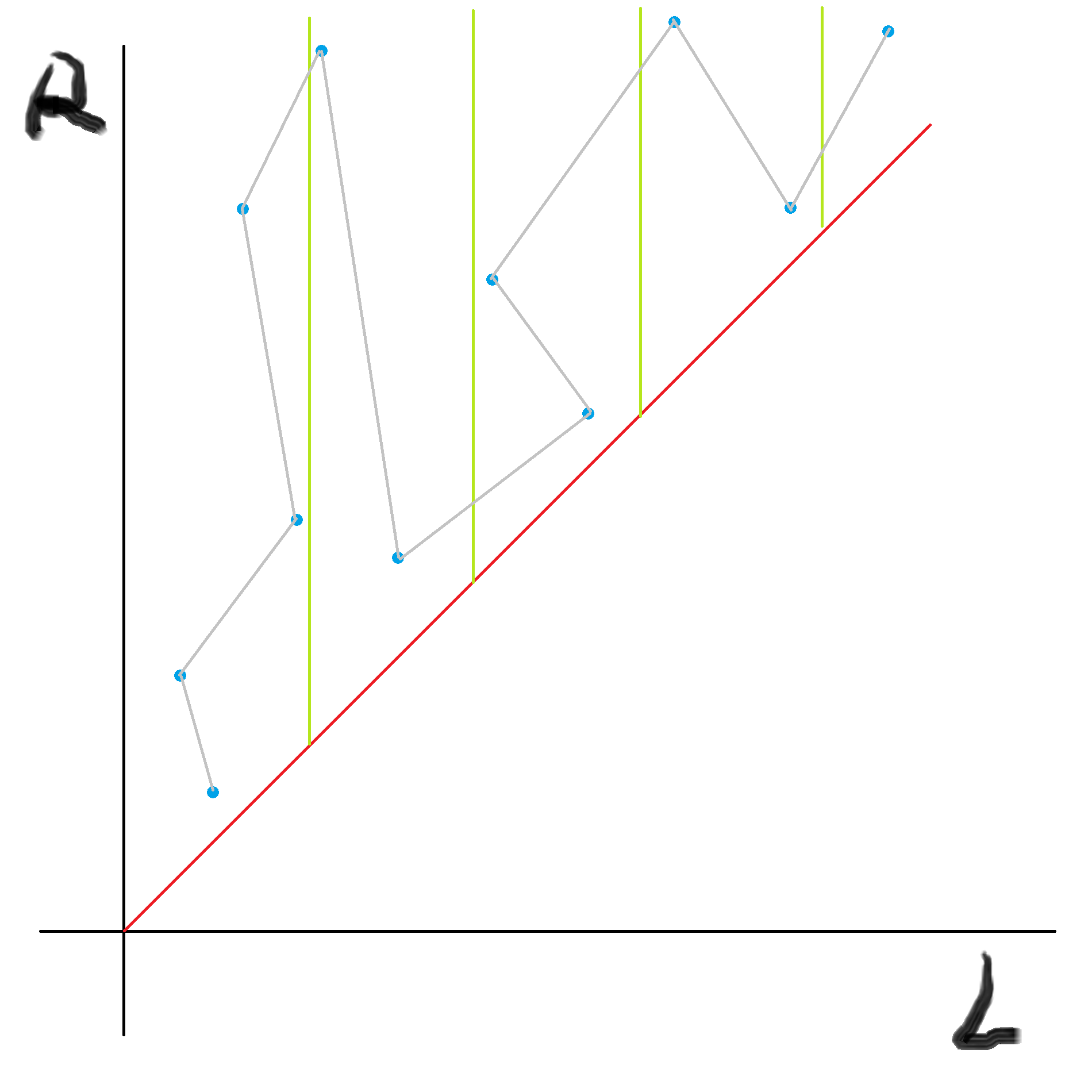 将所有的询问排序后放到坐标轴上: