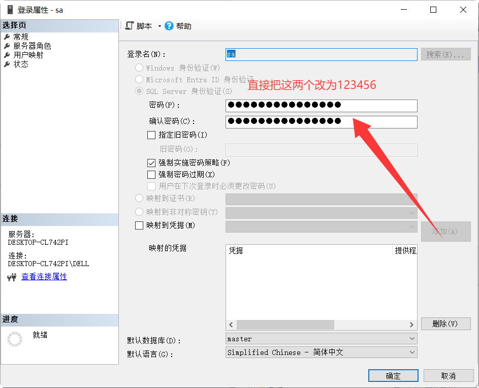 但是JSP技术是通过“用户名”和“密码”来登录数据库的,无法通过“Windows身份验证”的方式登录