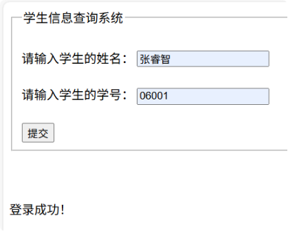 - 编写一个表单,提供学生登陆。输入学生的学号和姓名,如果匹配,则显示“登陆成功”,否则显示“登陆失败”