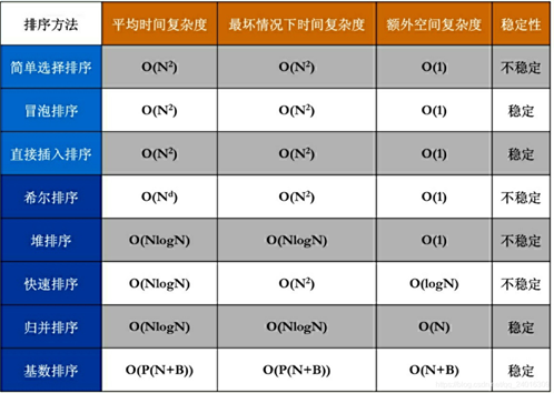 嵌入式100题(46):各种排序算法的时间空间复杂度、稳定性
