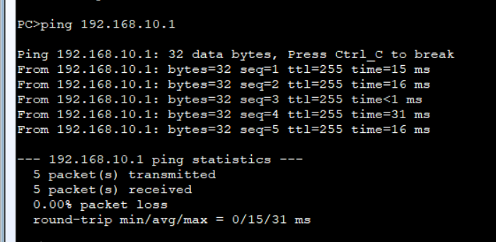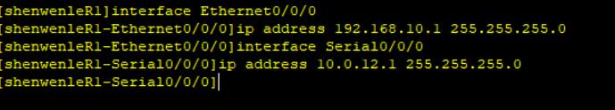 | PC-1 | Ethnet0/0/1 | 192.168.10.10 | 255.255.255.0 | 192.168.10.1 |