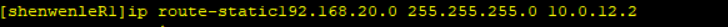 | PC-2 | Ethnet0/0/1 | 192.168.20.20 | 255.255.255.0 | 192.168.20.3 |