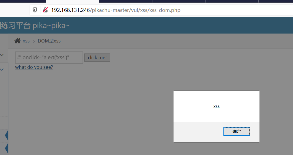 所以我们可以通过闭合的方式利用这个漏洞 在输入框中输入<a href='#' onclick="alert('xss')"'>what do you see?</a>"