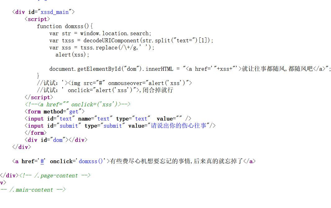 查看源码发现他通过window.location获取url中我们的输入信息然后还是发送到a标签。我们再次使用上次的代码进行,发现依然弹出窗。
