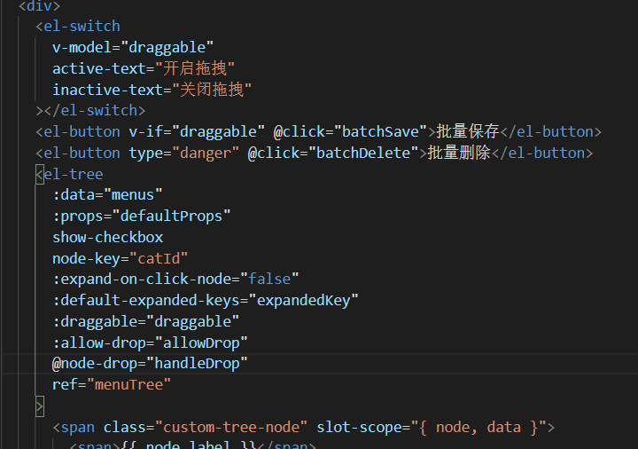 1)在三级菜单处添加@node-drop用来更新拖拽的数据