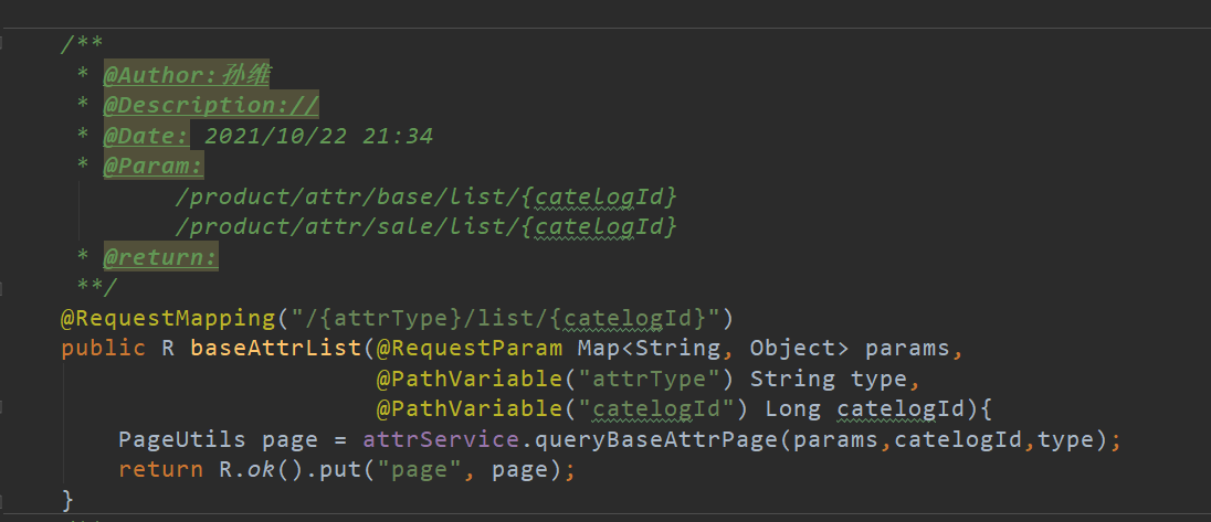 复用了请求方法,通过路径参数来进行规格参数记录查询和销售属性记录的查询