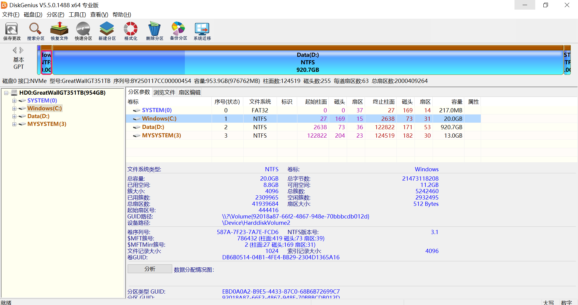 打开这个软件,你会看见磁盘的各种信息.