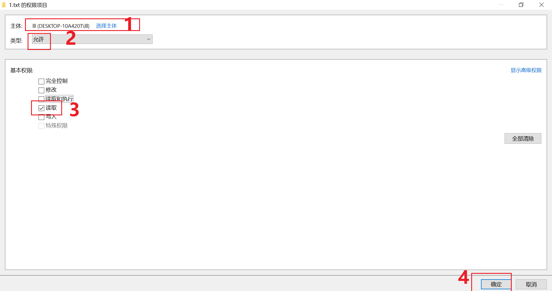 下面,我们添加当前的账户,并让当前账户只能读取这个文件,无法编辑,删除。