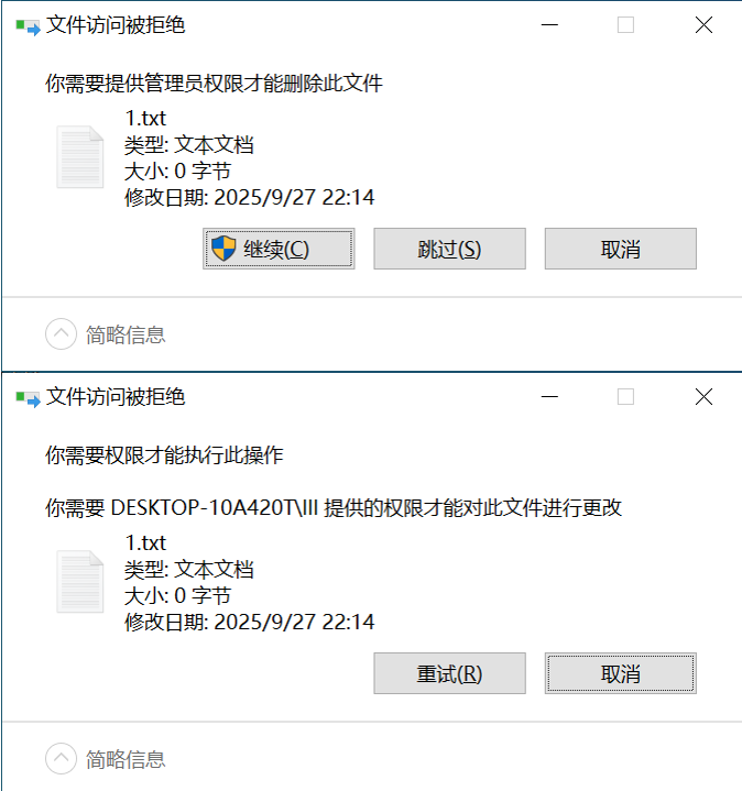 在某些场景下,制作一个只能读取不能删除的文件是一个很有用的操作。比如在统一管理的运维电脑上留联系方式等等。那么如何操作才能产生这个文件?我们完全不使用第三方工具,可以单纯使用NTFS文件系统的权限控制就可以处理。