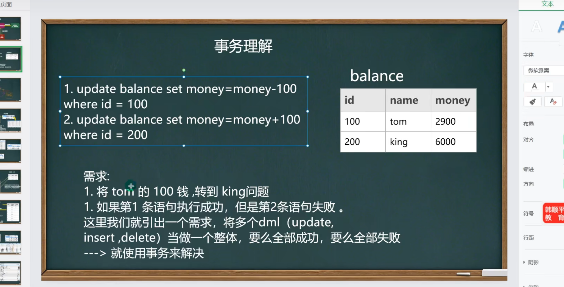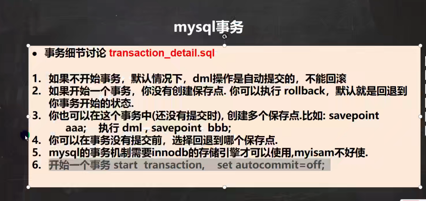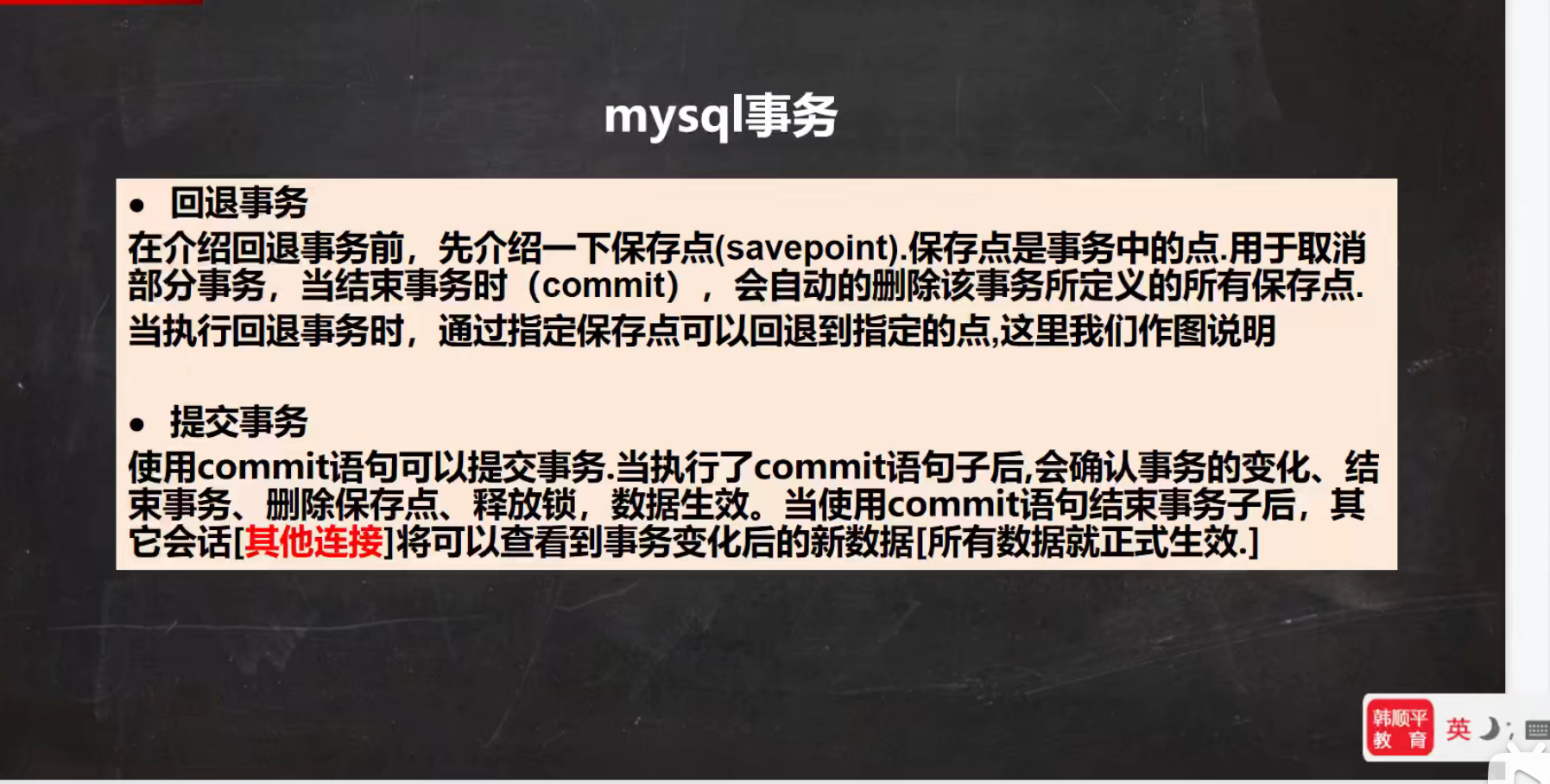 ROLLBACK -- 回退时不写保存点,则是回退到事务开始