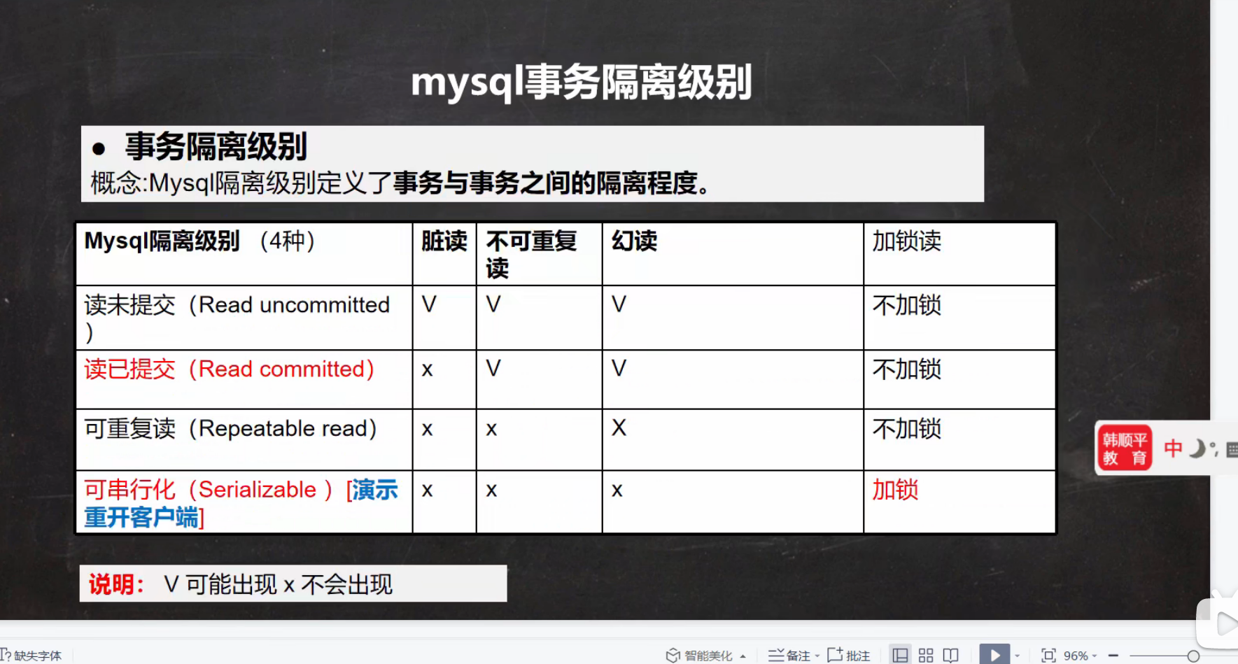 老师进行演示了可串行化的事务不能进行select操作,不知道别到操作能不能进行,待实验