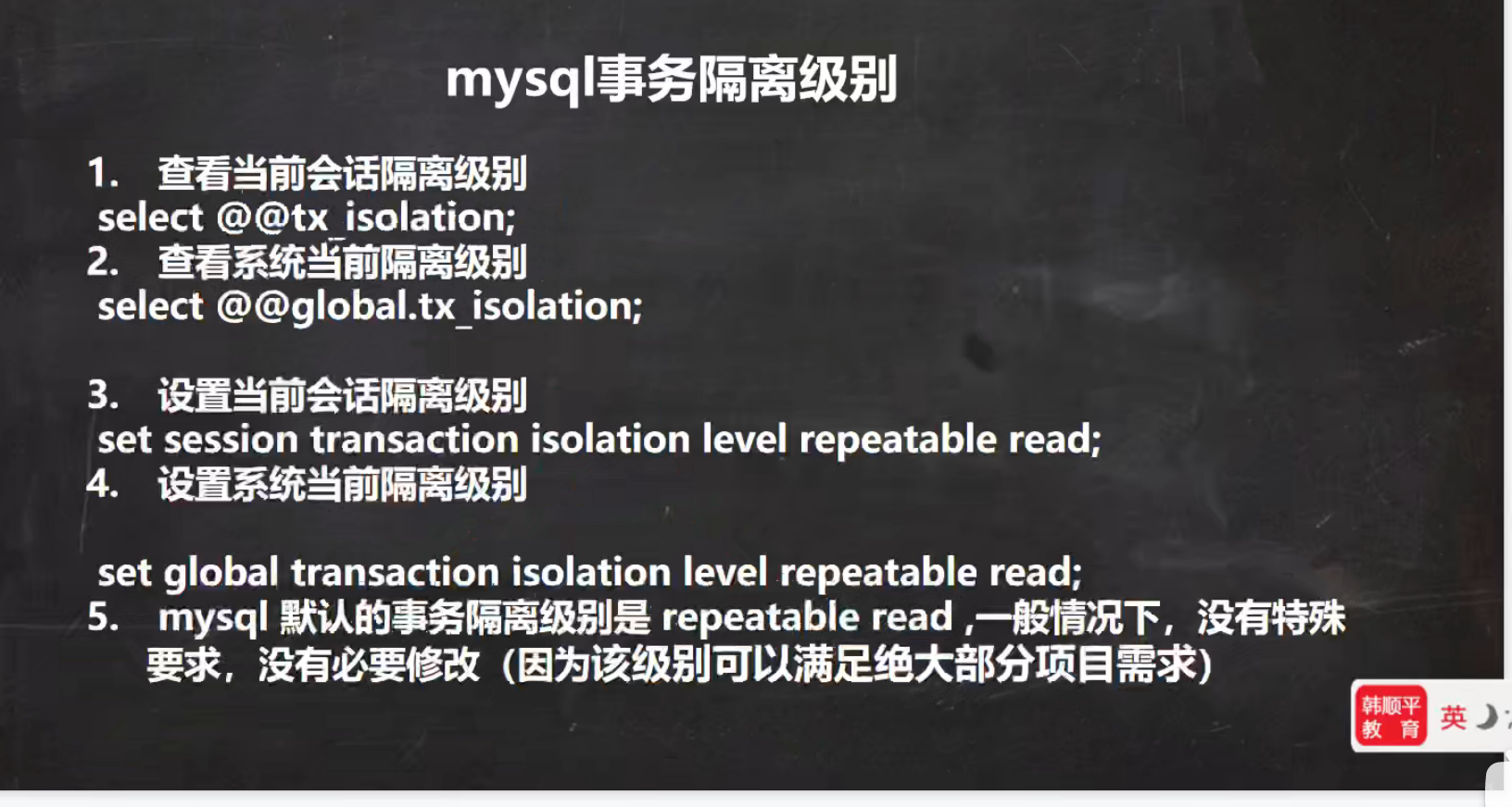 注意:隔离级别是和事务相关的,离开事务就不要谈隔离级别