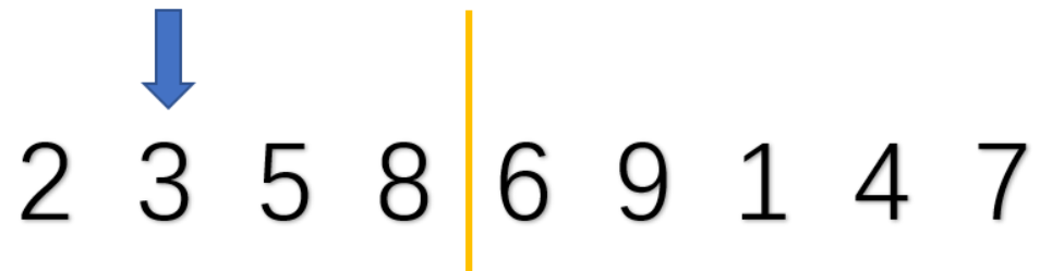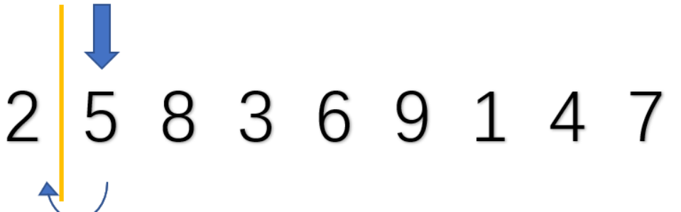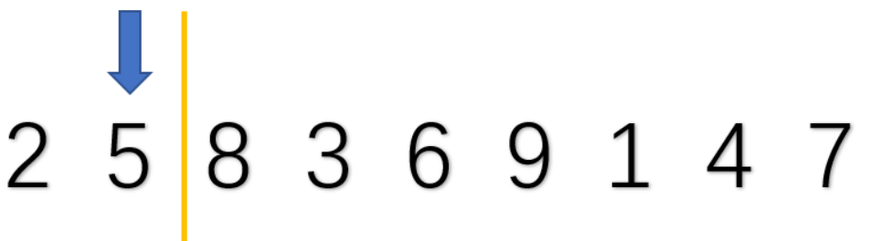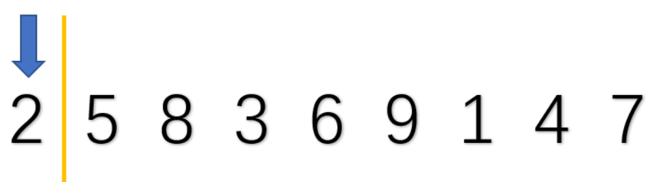 首先看第一个数2,一个数必然有序,所以将2划分有序,后面都是无序