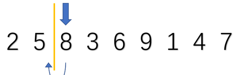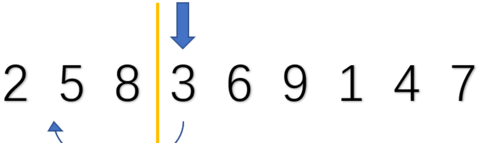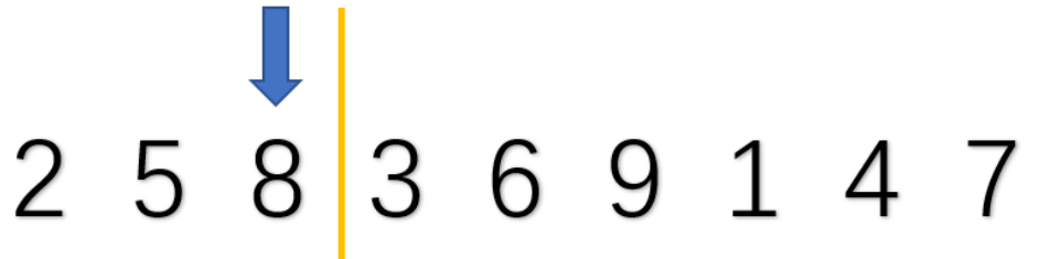 例子:以下用数组2,5,8,3,6,9,1,4,7为例,从小到大排序 。