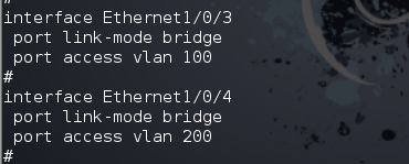 这里可以看到 Ethernet 1/0/3在vlan100中.而Ethernet 1/0/4在vlan200中,也就是我们所处的vlan。