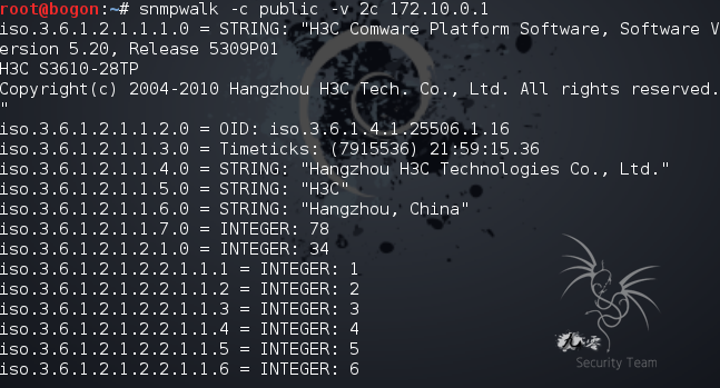 发现果真使用public默认的可读团体字符串.继续尝试使用snmp获取到H3C设备密码