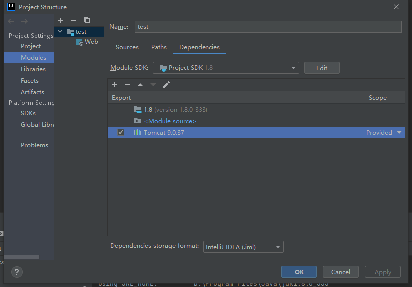 在项目结构里面,选择模块,点击加号,把tomcat添加进去就可以了